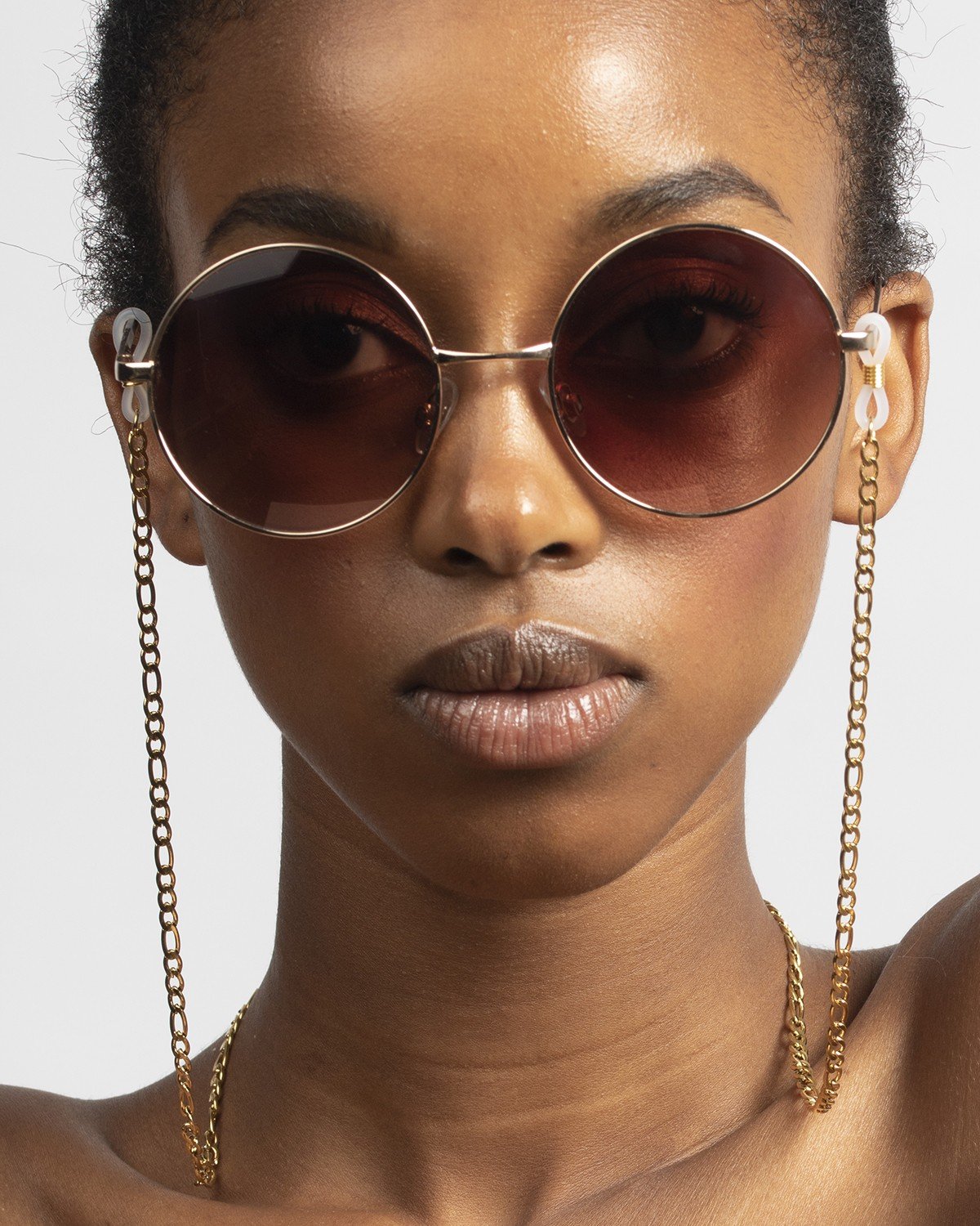 Figaro glasses chain gold es un cordón para las gafas de cadena programada de acero chapado en oro. Este accesorio es ideal para el verano para combinar con tus gafas de sol.