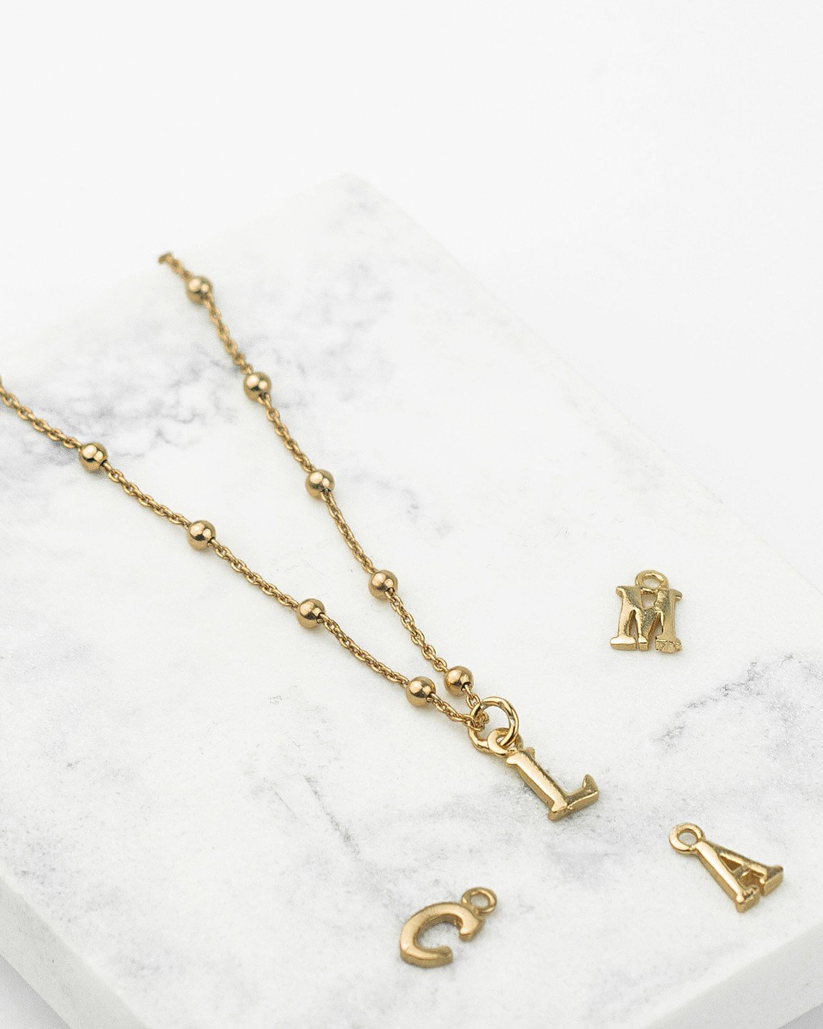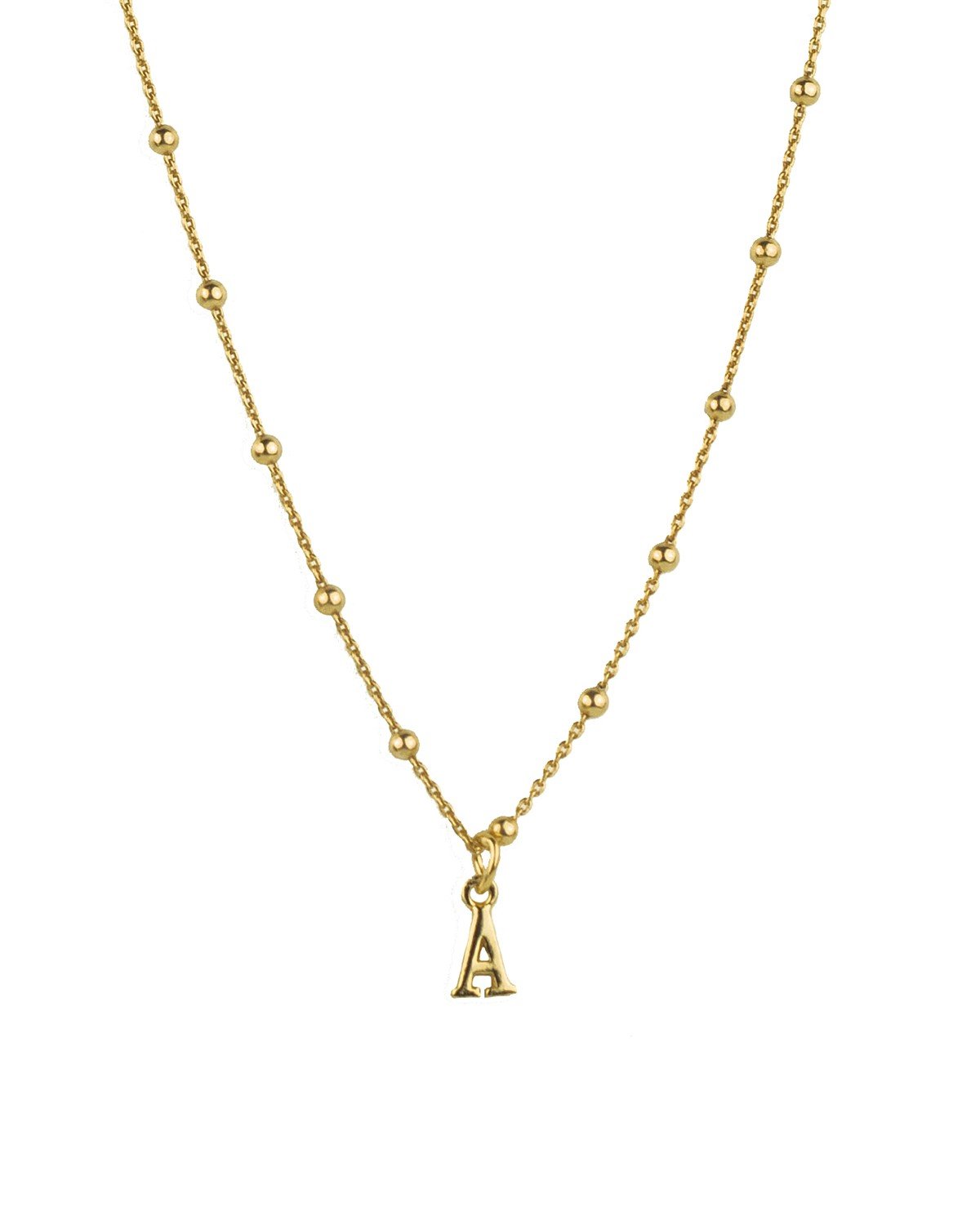 Este delicado collar personalizado luce una letra inicial de 7 mm elaborada en plata de ley 925 chapada en oro de 18 kilates, suspendida de una cadena ajustable de bolitas (35 a 40 cm). Su diseño minimalista lo hace perfecto para usar solo o en combinación con otras piezas de tu colección.