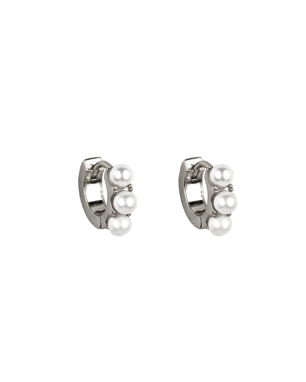 Pendiente de aro con tres perlas naturales de plata de ley 925. Combínalos con otros pendientes en la misma oreja para conseguir un look más atrevido. Hipoalergénicos, ligeros y minimalistas.