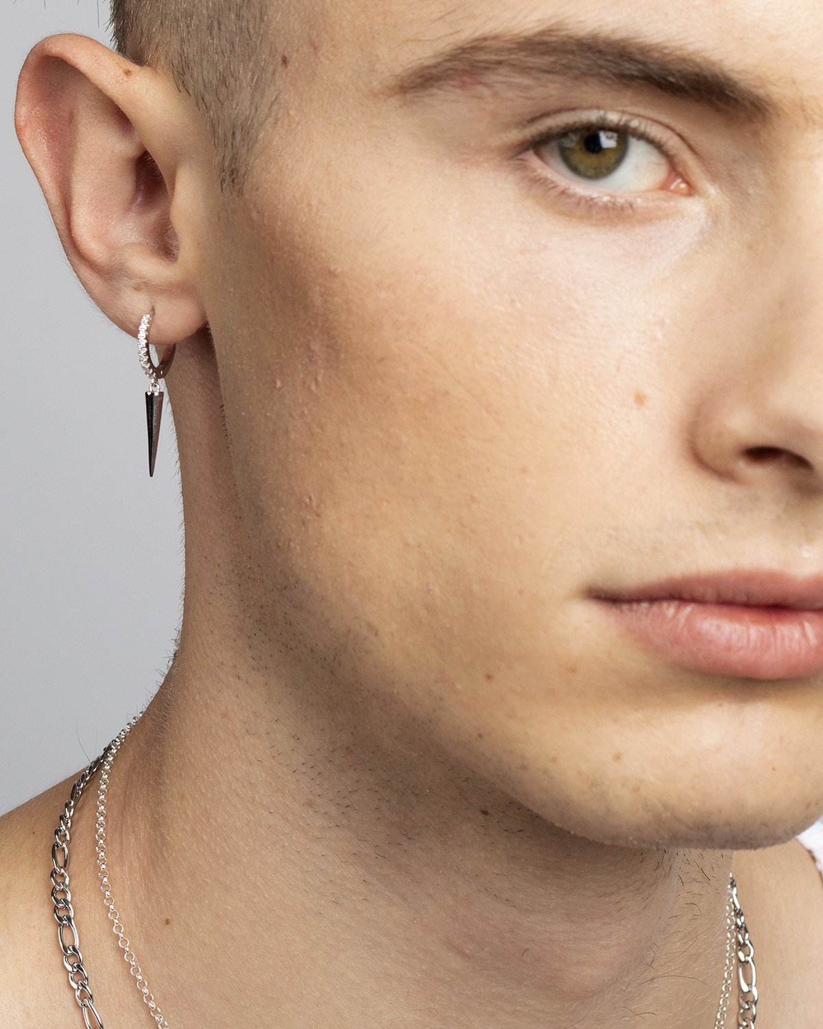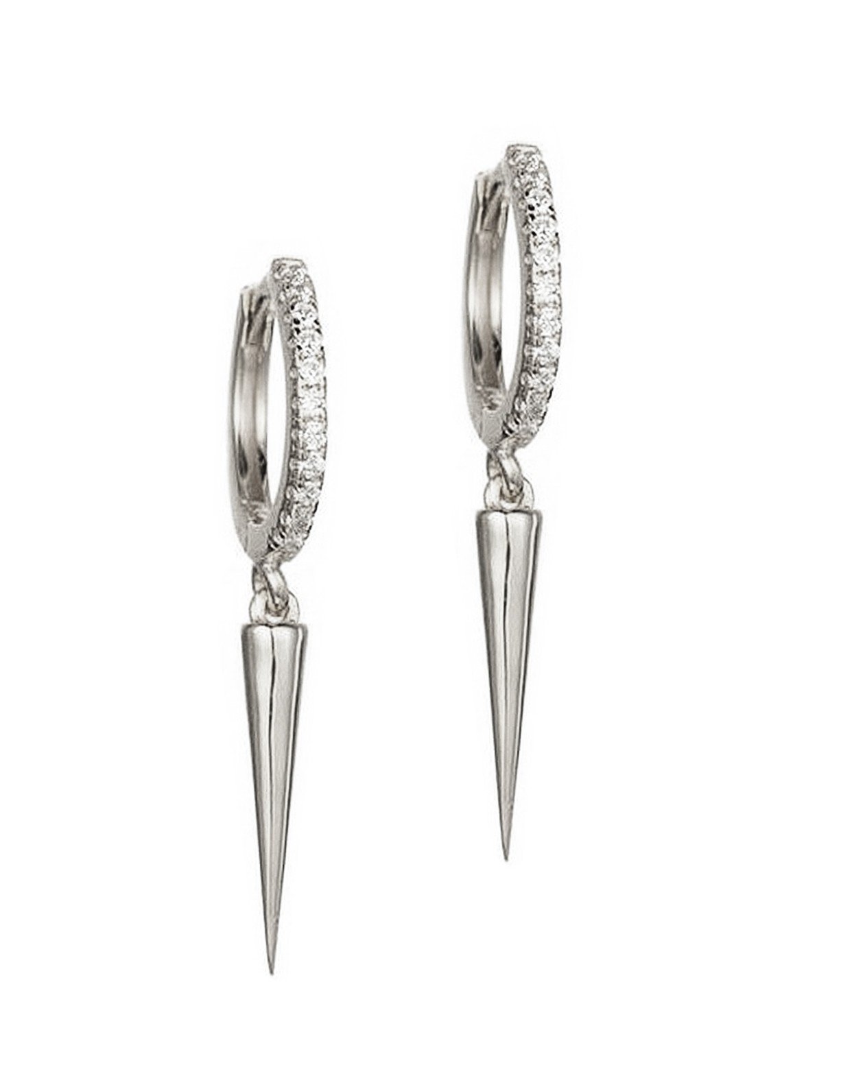 Pendientes de aro con zirconitas brillantes y un colgante en forma de pincho de plata de ley 925.