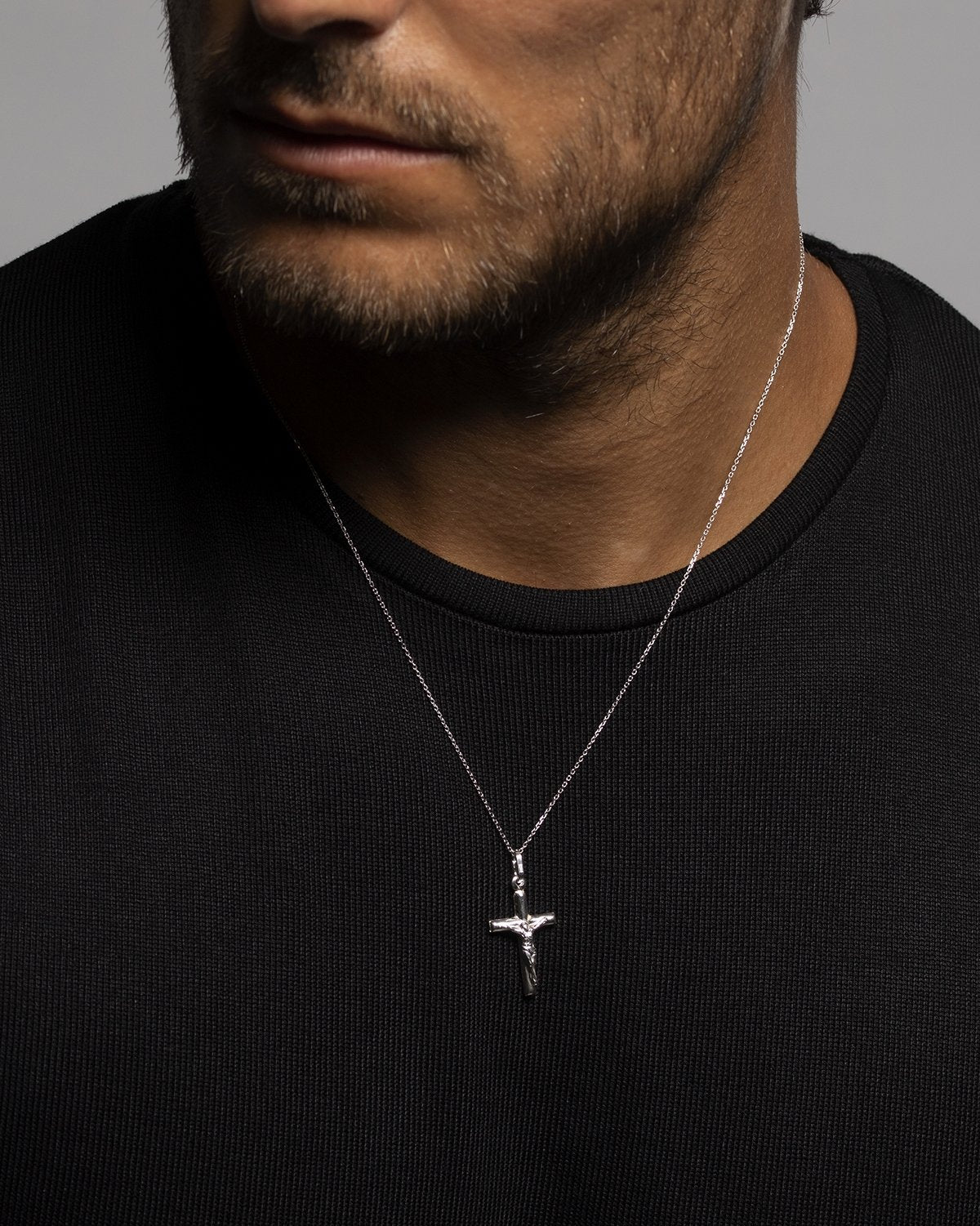 Collar Cruz con Cristo en Plata 925 para Hombre