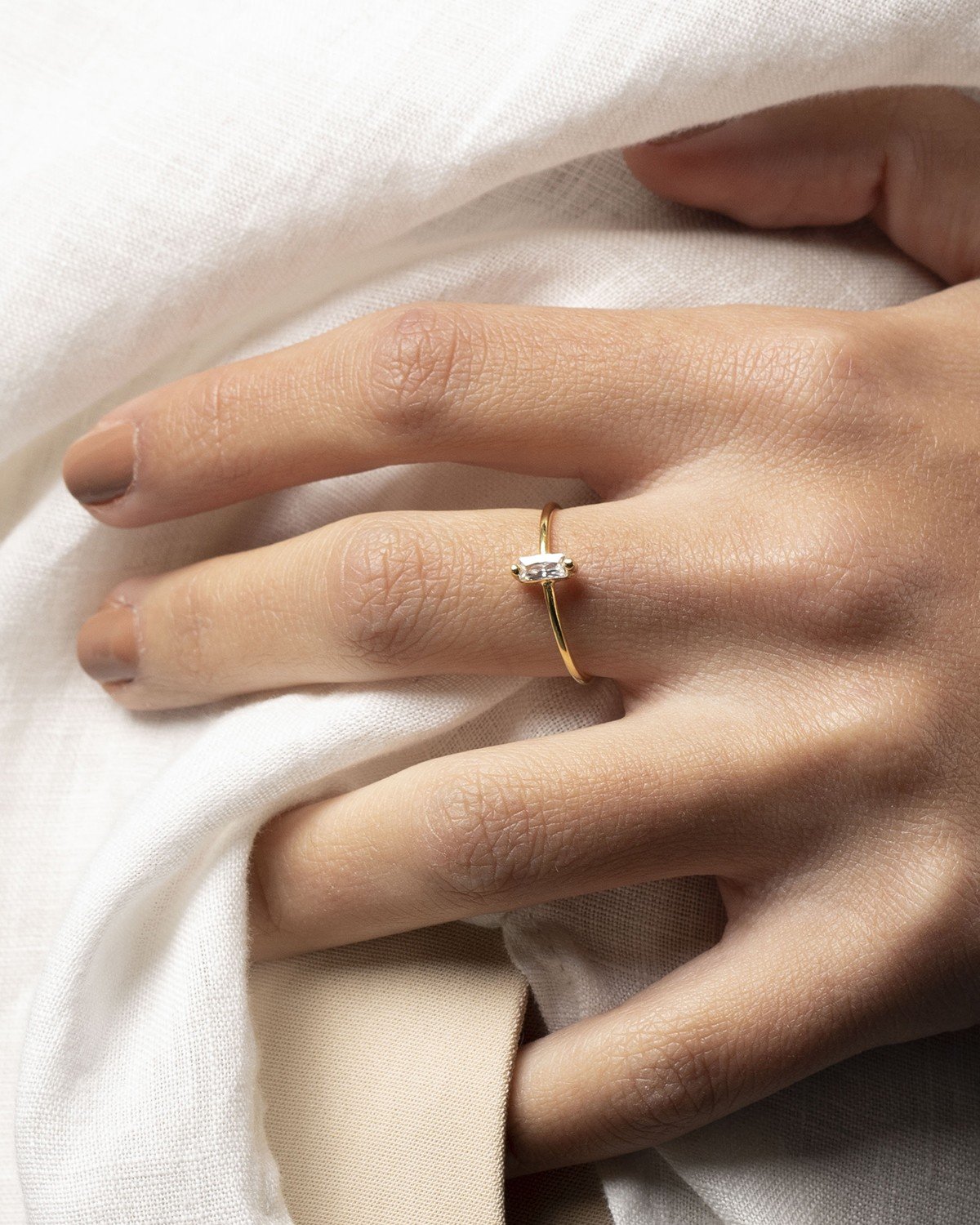 Este anillo moderno y sofisticado con una zirconita talla baguette está hecho en plata de ley 925 chapada en oro de 18 kilates y es el regalo perfecto para quienes buscan joyas diferentes y llenas de estilo. Inspirado en las joyas clásicas de compromiso, su diseño simple, minimalista y moderno lo convierte en una pieza ideal para llevarlo solo o combinarlo con otros anillos apilables. Además, es hipoalergénico, ligero y minimalista, perfecto para el uso diario.