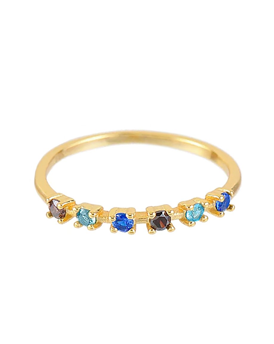 Anillo con Zirconitas Cúbicas en Tonos Azules y Marrones en Oro