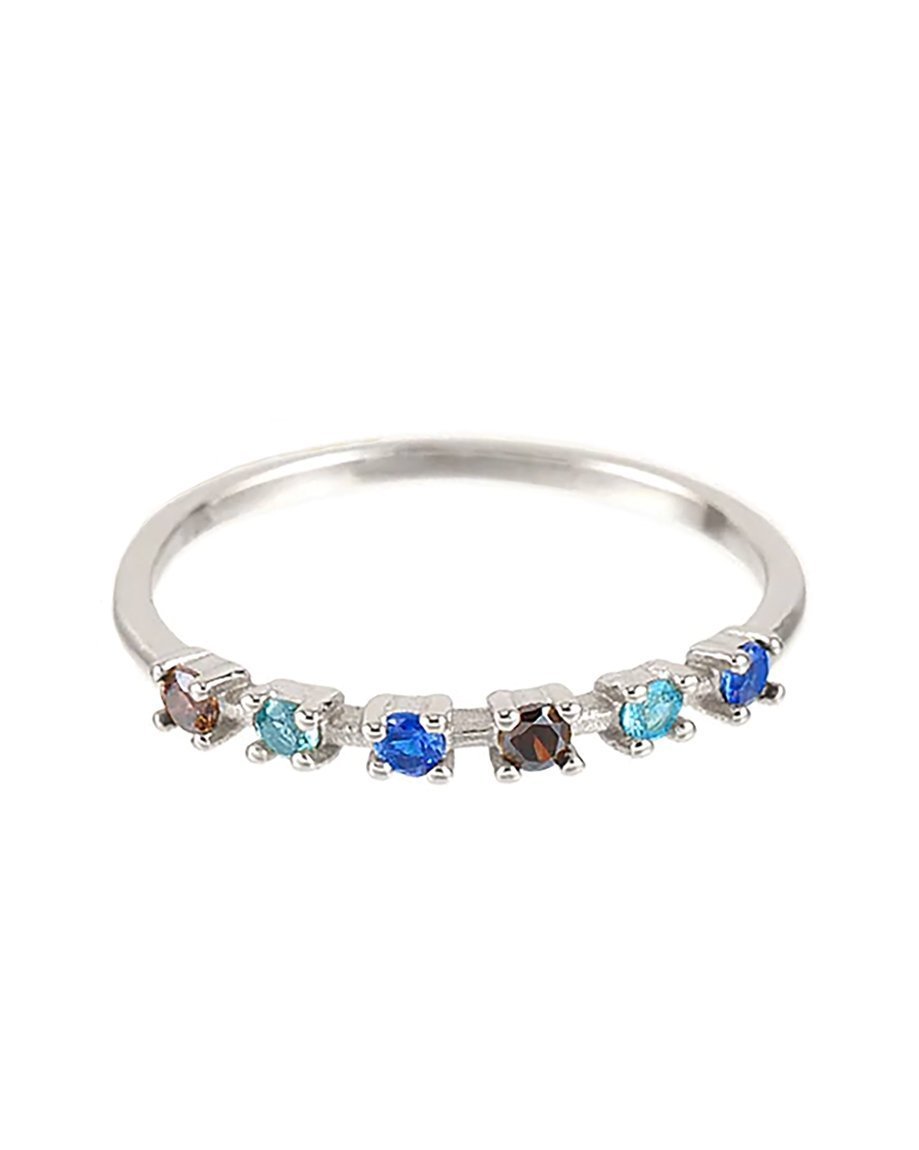 Anillo con Zirconitas Cúbicas en Tonos Azules y Marrones en Plata de Ley 925