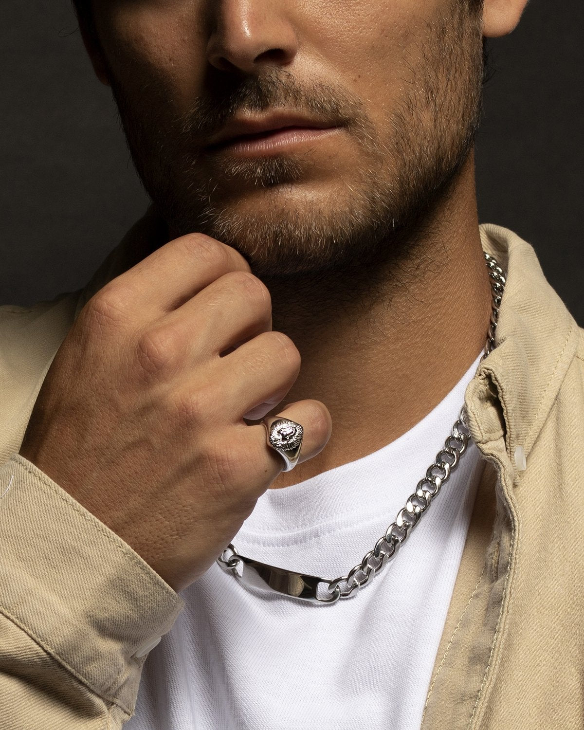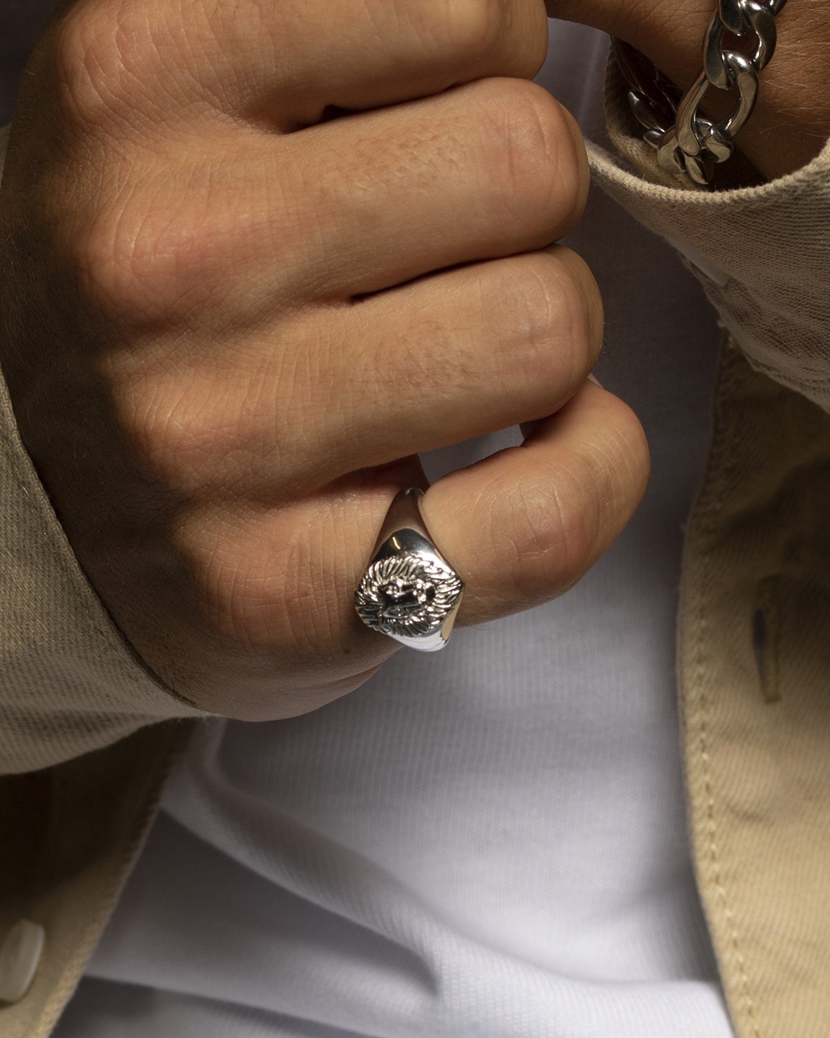 Lion signet silver es un anillo sello con un león hecho en plata de ley 925. Al ser un anillo abierto en la parte trasera, permite ajustarse a la talla de tu anillo.