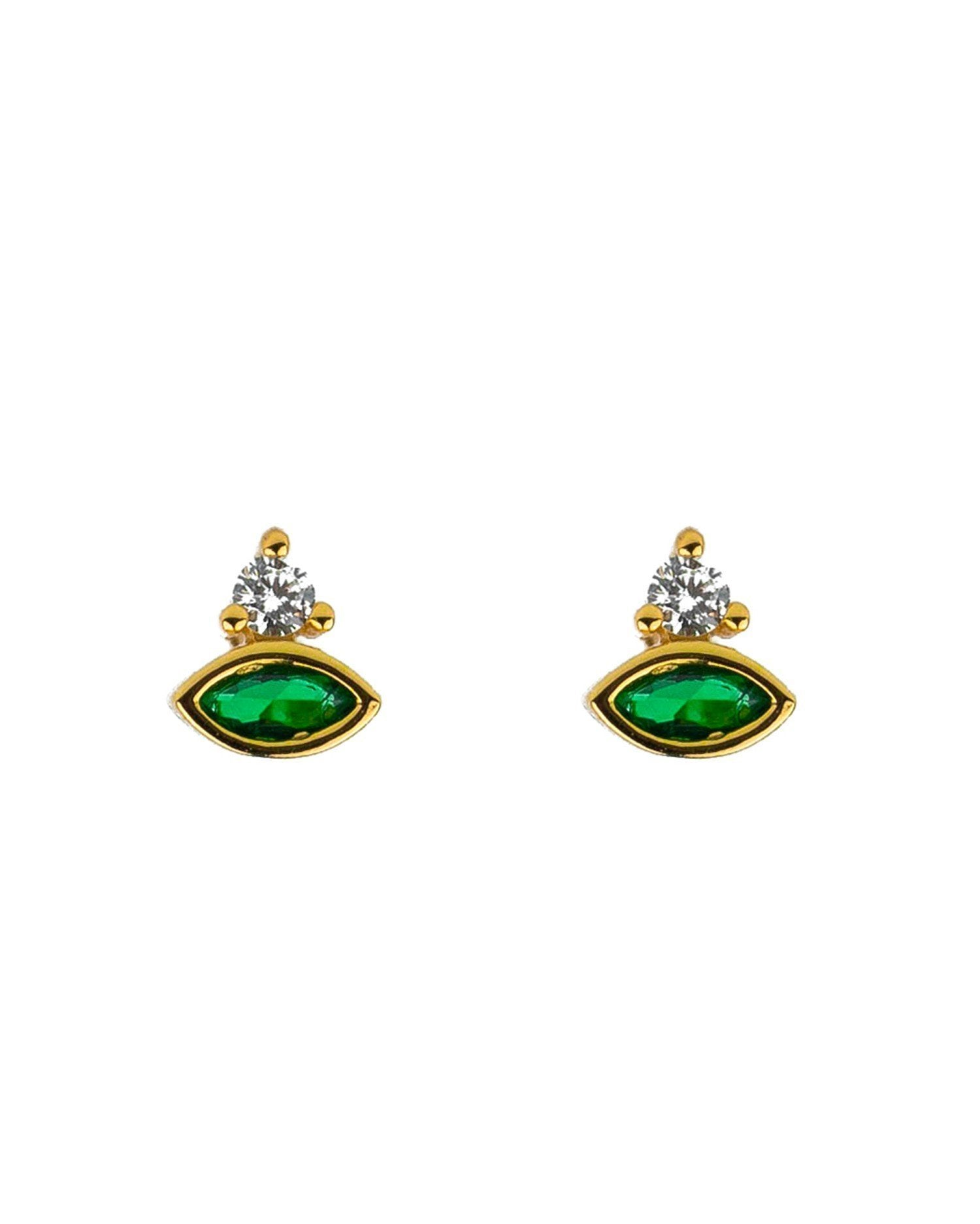Estos pendientes pequeños son ideales para llevar en varios agujeros de la misma oreja, perfectos para el día a día. Hechos en plata de ley 925 chapada en oro de 18 kilates, cuentan con una zirconita verde esmeralda en talla marquesa y una zirconita cúbica brillante. Gracias a su diseño versátil, puedes llevarlos tanto durante el día con un look minimalista o para ocasiones especiales, cuando busques algo más arreglado. Son cómodos y se adaptan a cualquier estilo y momento.