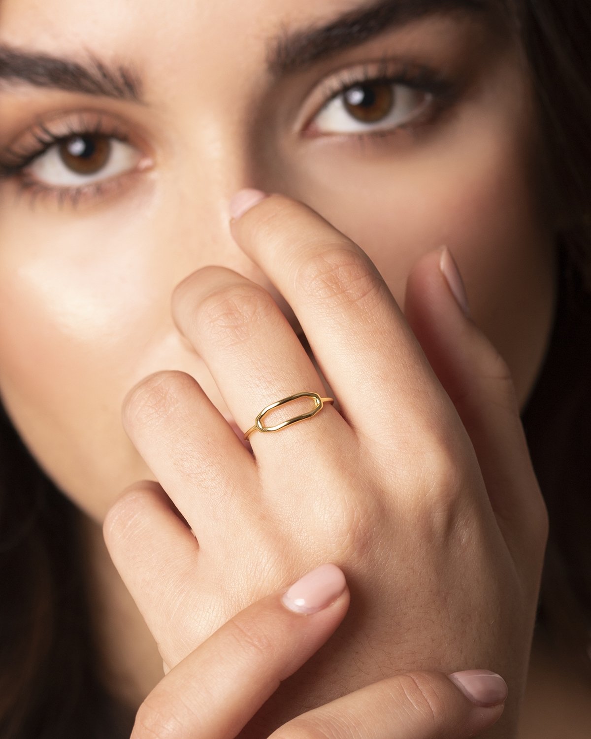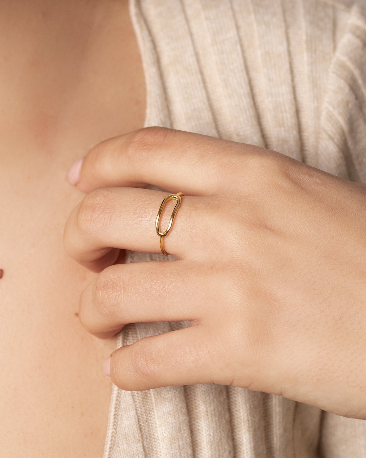 ¡Dale un toque moderno y vanguardista a tu estilo con este anillo de forma geométrica! Fabricado en plata de ley 925 chapada en oro de 18 kilates, este anillo combina un diseño contemporáneo con la calidad y durabilidad que solo la plata de ley puede ofrecer. Su forma geométrica lo convierte en un accesorio único, perfecto para destacar en cualquier look. Ya sea para un evento especial o para uso diario, este anillo es ligero, cómodo y versátil. ¡Hazte con él y deja que tu estilo brille con un toque de modernidad!