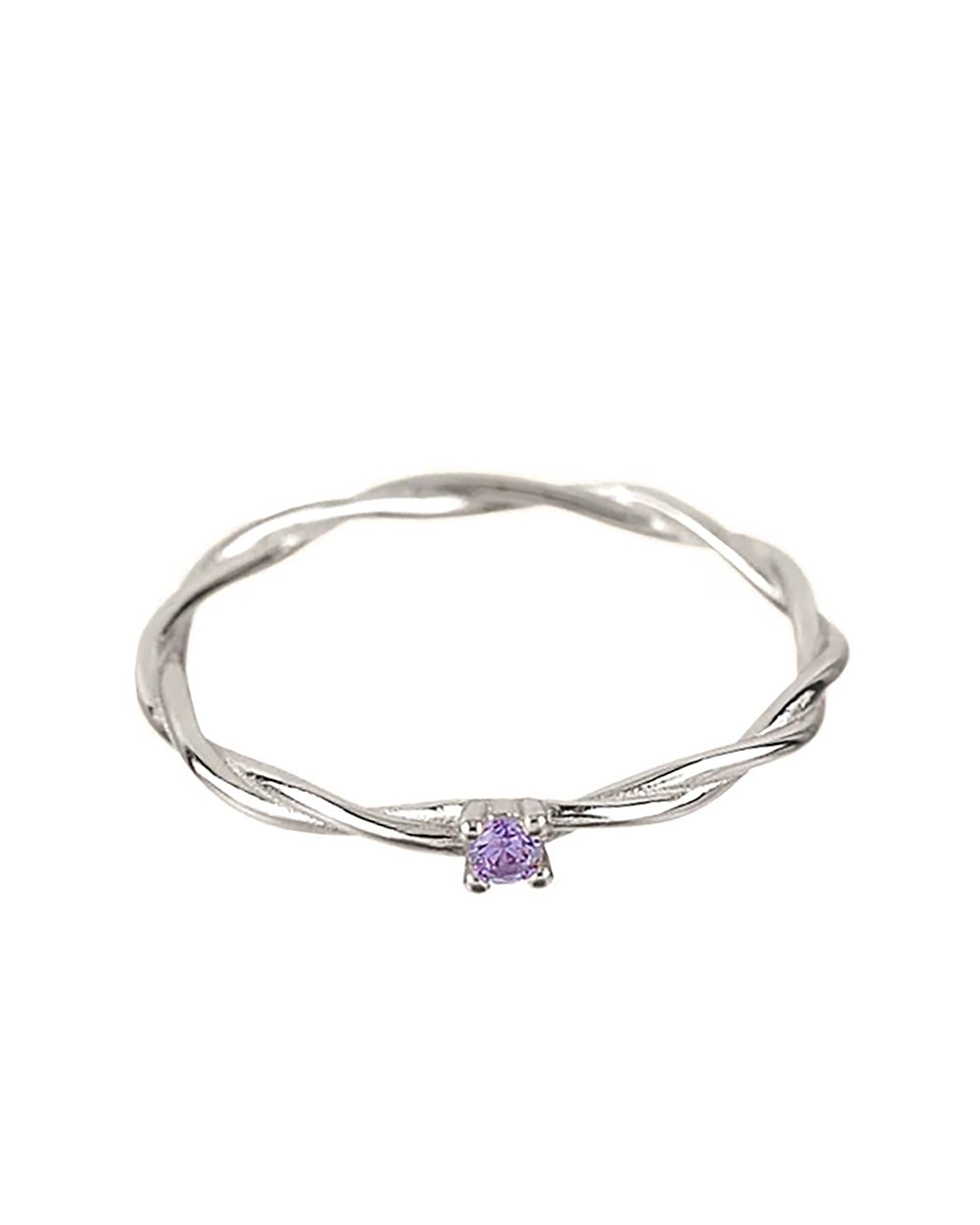 Anillo Solitario con Banda Trenzada y Piedra de Zirconita Cúbica violeta en Plata de Ley 925
