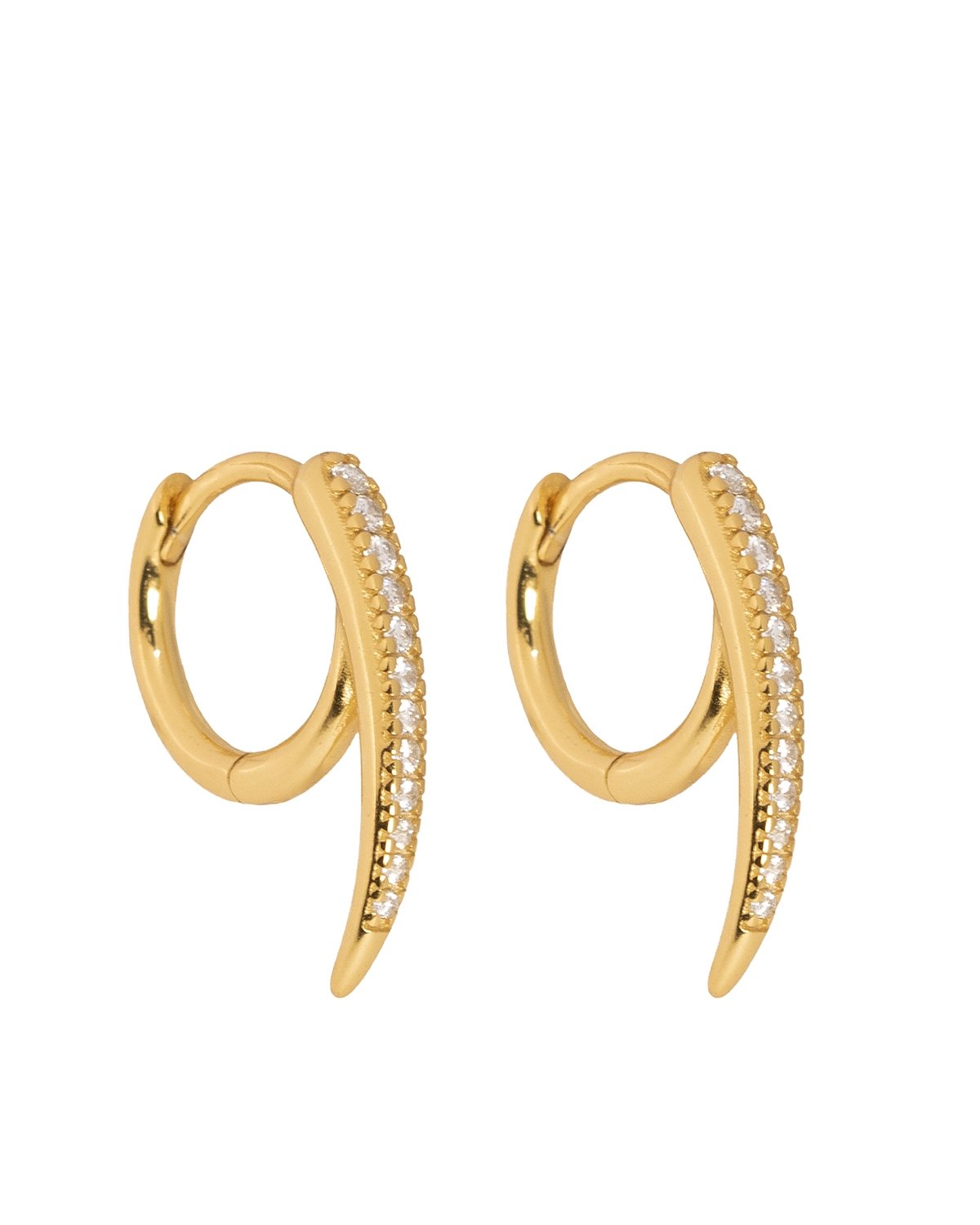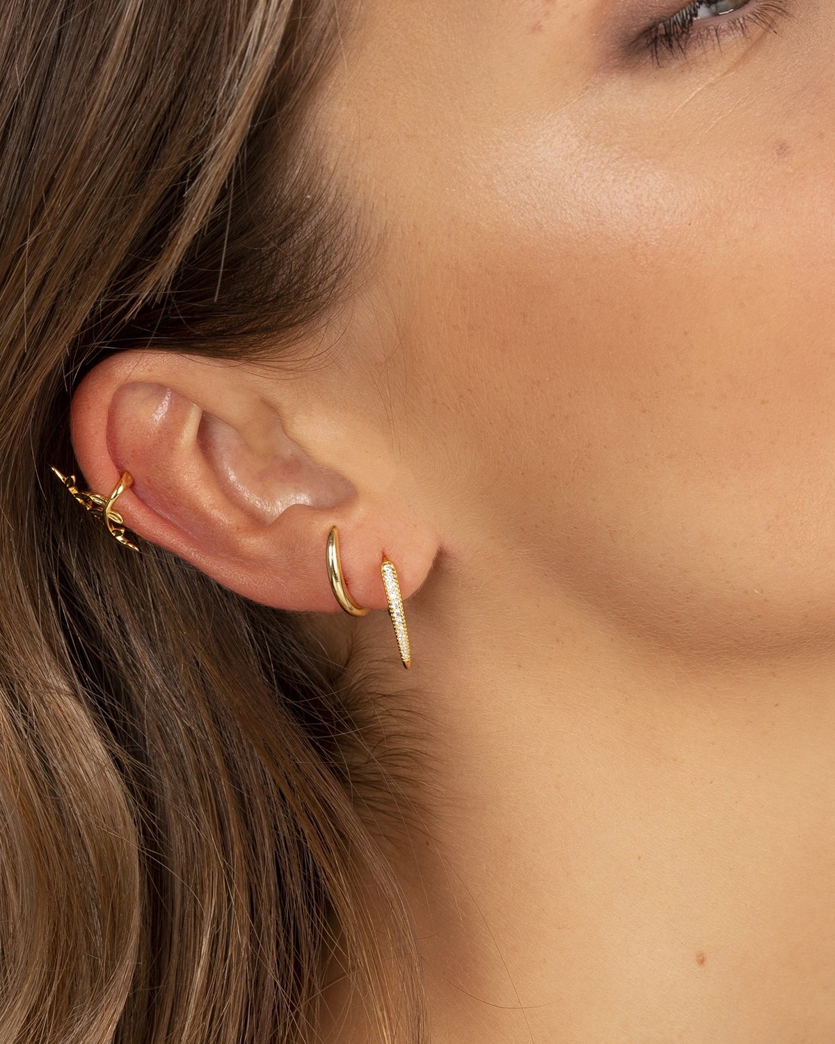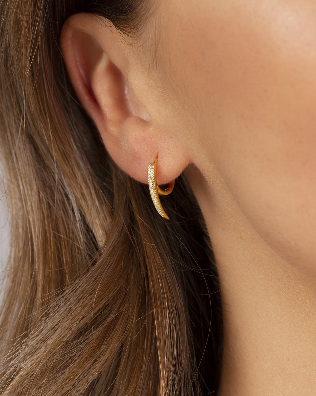 Pendientes de aro con un pincho y zirconitas cúbicas brillantes hechos en plata de ley 925 chapada en oro de 18 kilates. Estos aritos son perfectos para el día a día y aportarán un toque de brillo a tus looks.