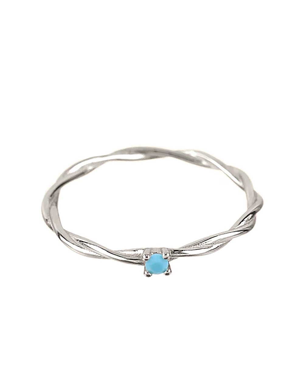 Este anillo solitario cuenta con una elegante banda trenzada y una piedra central de zirconita cúbica turquesa, hecha en plata de ley 925. Su diseño delicado y sofisticado lo convierte en una pieza perfecta tanto para ocasiones especiales como para el uso diario. Ideal para quienes buscan un toque de brillo y estilo en sus manos.