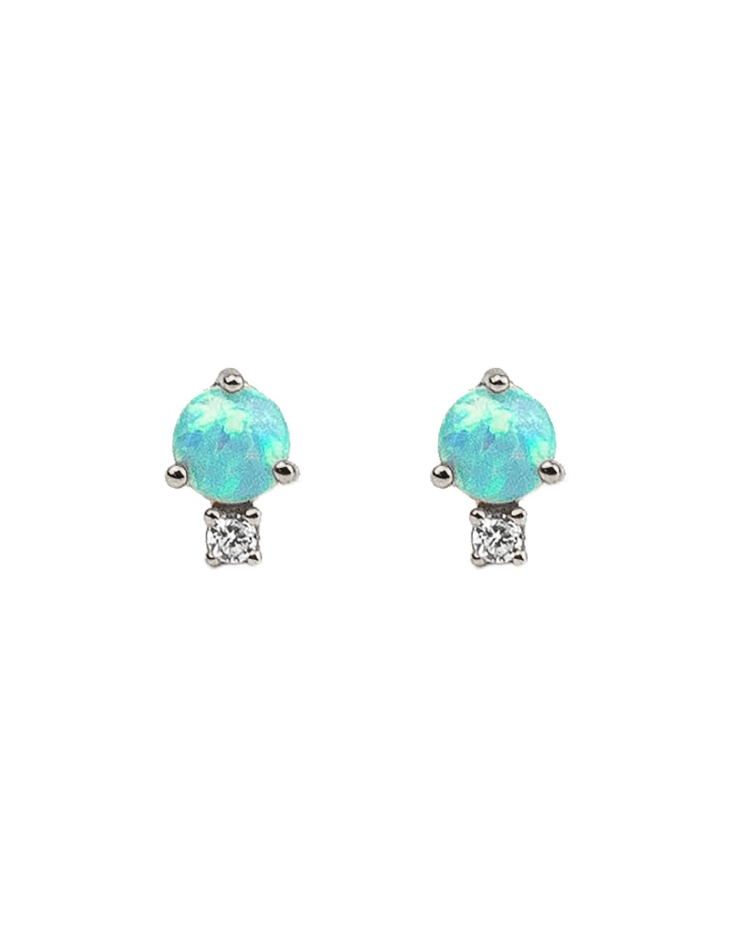 Pendientes con una piedra de ópalo natural y una zirconita brillante con cierre de presión hechos en plata de ley 925.