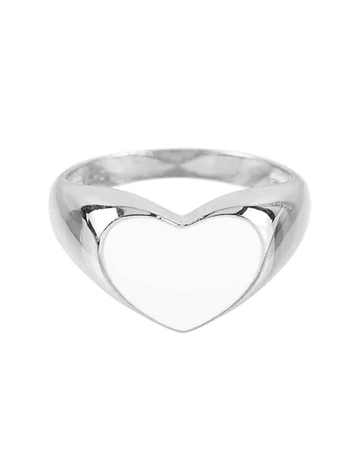 Anillo Estilo Sello en Forma de Corazón con Esmaltado Blanco en Plata de Ley 925