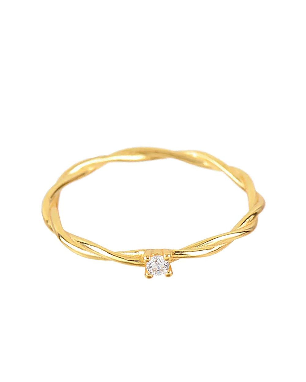 Este anillo solitario cuenta con una elegante banda trenzada y una piedra central de zirconita cúbica blanca, hecha en plata de ley 925 chapada en oro de 18 kilates. Su diseño delicado y sofisticado lo convierte en una pieza perfecta tanto para ocasiones especiales como para el uso diario. Ideal para quienes buscan un toque de brillo y estilo en sus manos.